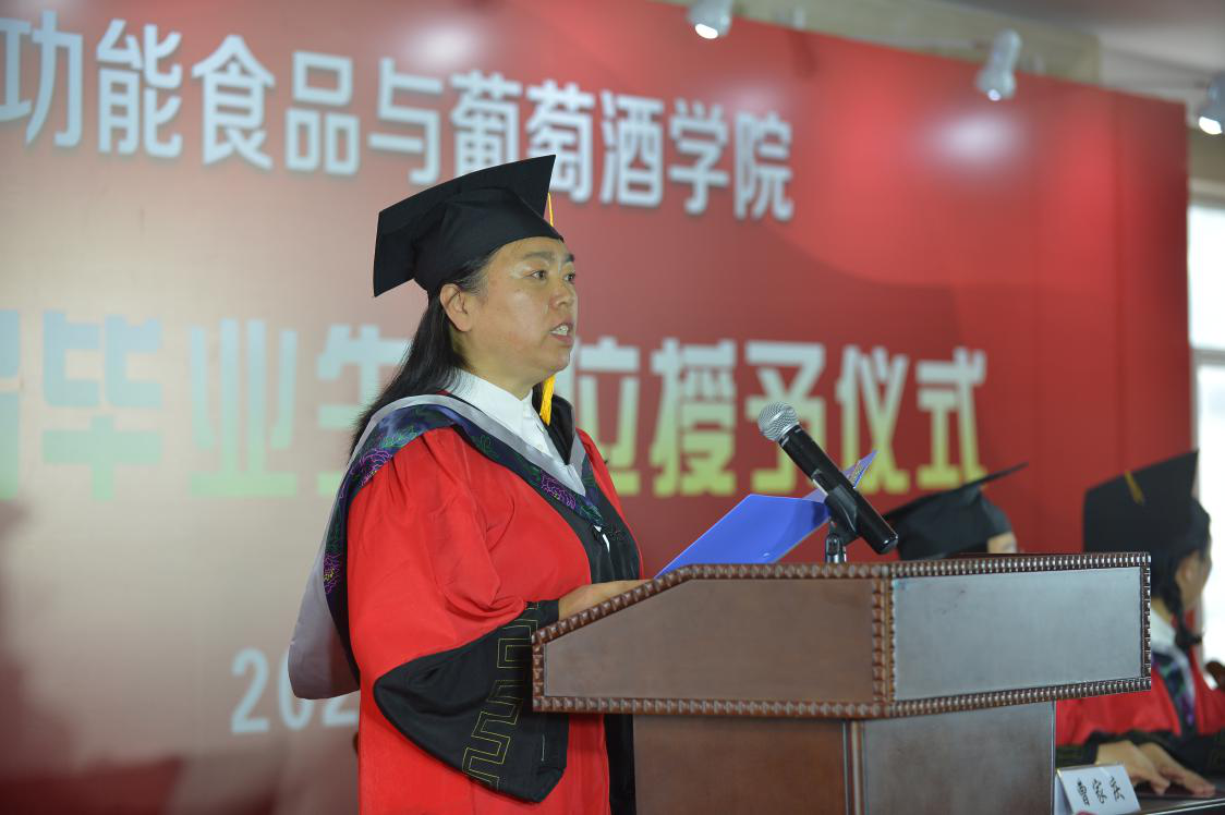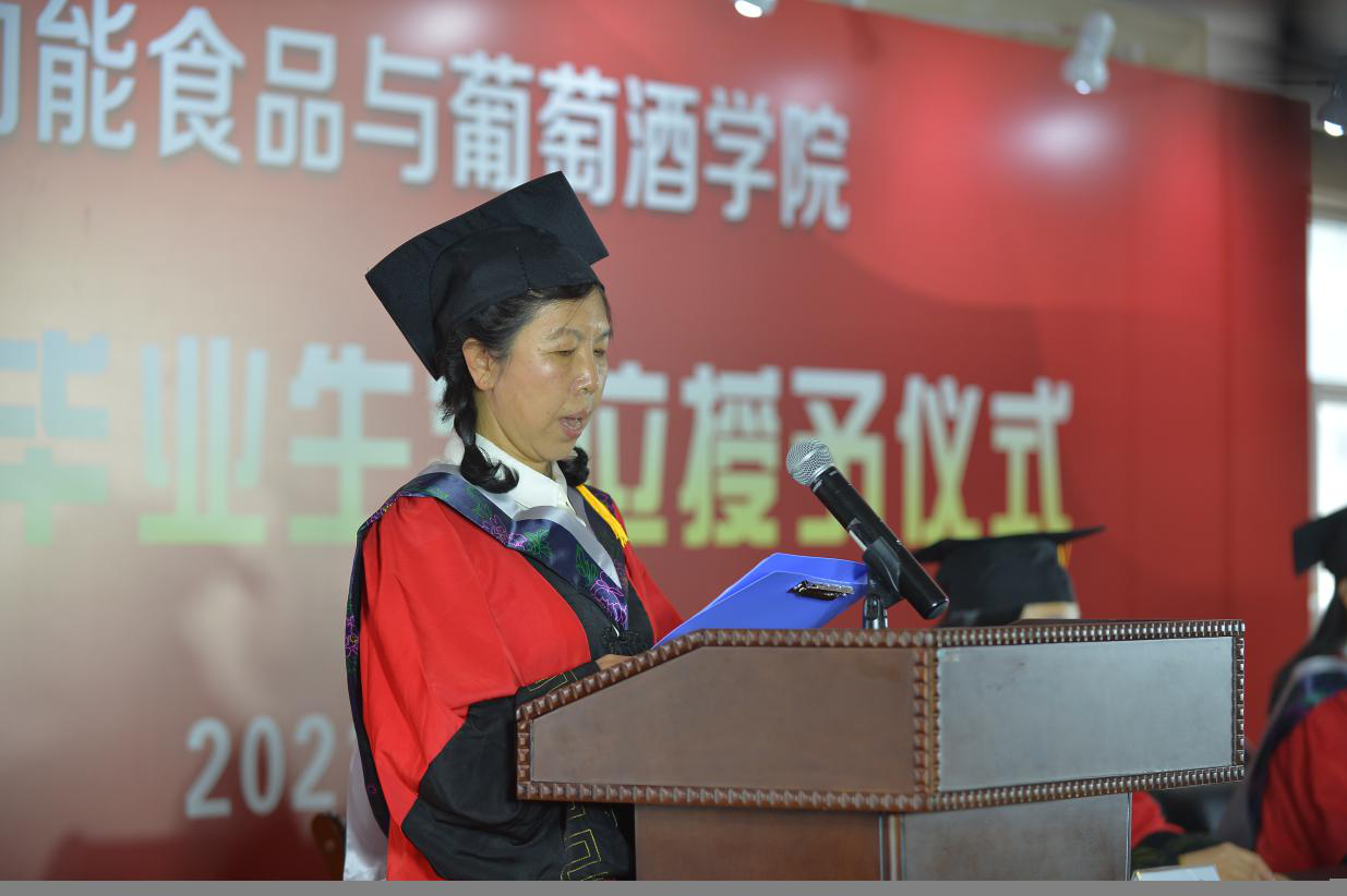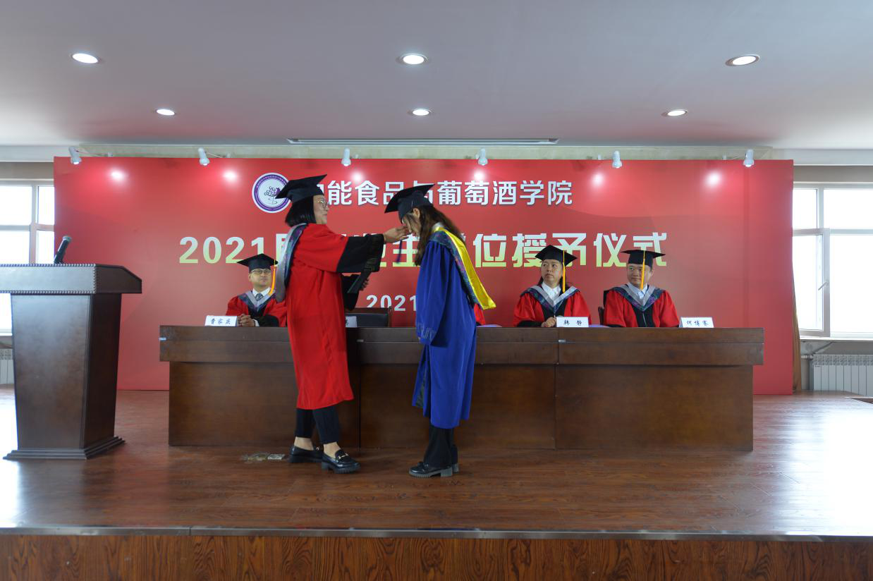 公司硕士生导师、副经理韩静教授宣读《关于授予柏丁铃等73名2021届本科毕业生工学学士学位的决定》,公司学位评定分委员会委员们为获得学士学位的本科生拨流苏,并颁发学位证书。