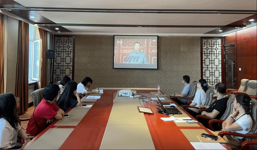 公司组织全体教职工在418会议室集中观看。庆祝大会多个瞬间令人潸然泪下,虽与天安门广场远隔千里,但心的距离近在咫尺。习近平总书记在庆祝大会上讲到:“一百年来,中国共产党团结带领中国人民进行的一切奋斗、一切牺牲、一切创造,归结起来就是一个主题:实现中华民族伟大复兴。”作为党的建设的参与者,回首一百年中国共产党的光辉历史,深感喜悦自豪。