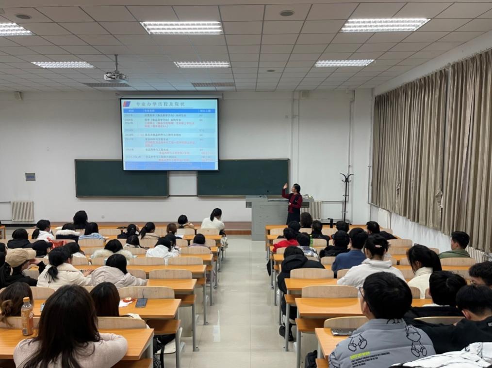 韩静从专业概况、培养目标、课程设置和科研实力四个方面详细地介绍了食品质量与安全专业;孙宝山从专业的重要性、公司创办葡萄与葡萄酒专业的特色与亮点、就业方向和现状等方面详细做了介绍;徐威从专业办学历程及现状、专业培养目标与特色、教师队伍及教学科研效果和人才培养优势与员工培养成效四个方面详细的介绍了食品科学与工程专业。