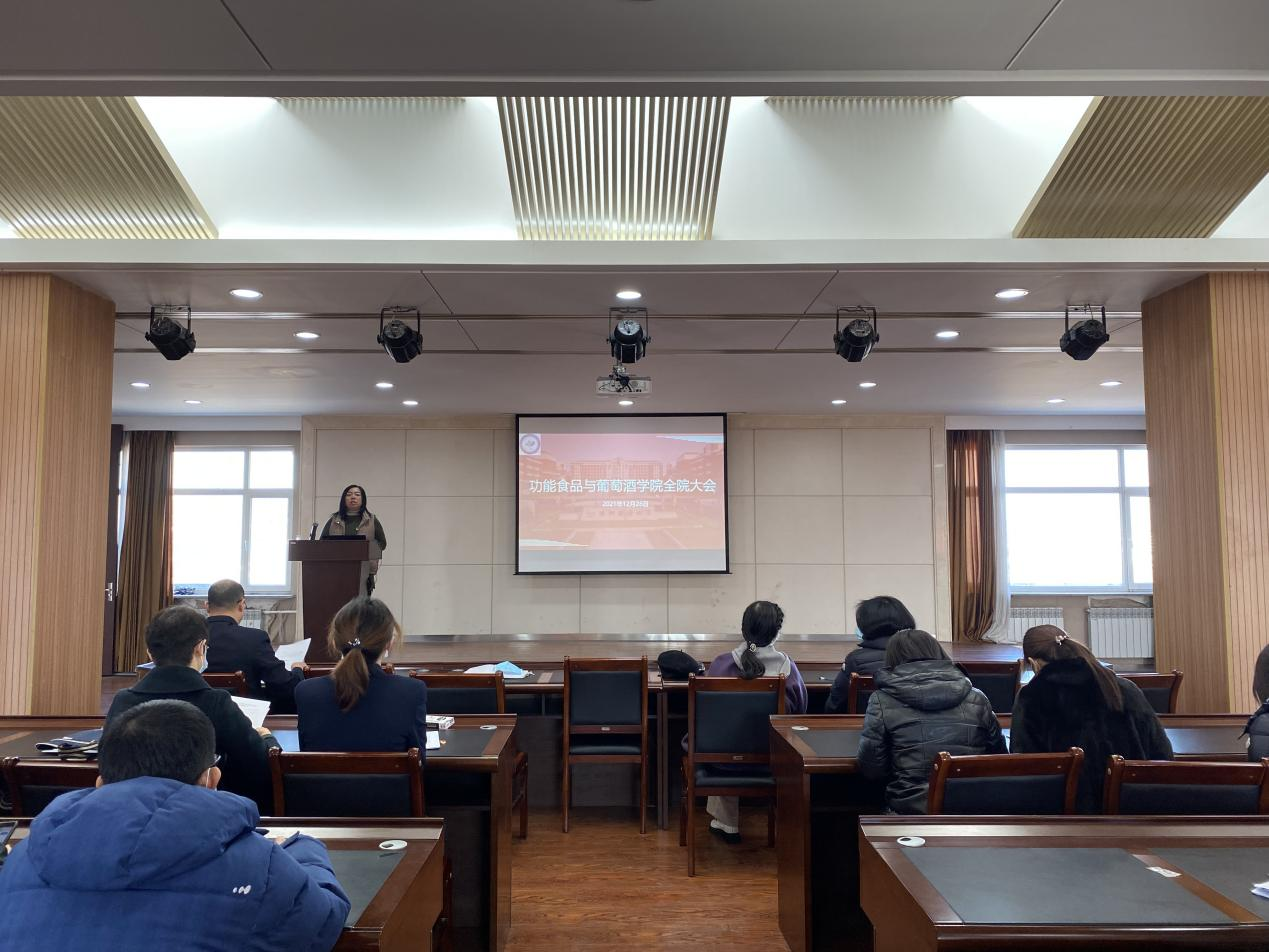 全院大会由公司党委书记张万敏主持。公司副经理韩静、徐威、贾英分别从分管领域对公司教学工作、国际交流、科研管理等方面进行总结并对2022年工作计划进行了汇报,张万敏作会议总结。会议强调,全体教师应创新教学思维,加强发挥教研室团队作用,提高课题申报质量和科研整体水平,落实奖惩机制,强化公司团队建设全面布局,推进国际化办学,认真对待绩效考核,与公司要求看齐,共同找差距、强弱项、补短板,着力打造“国际化、功能食品、新工科”食品类专业3张名片。会议还对寒假假期工作进行了部署,重点强调实验室安全、员工人身财产安全、党风廉政建设、师德师风等工作。