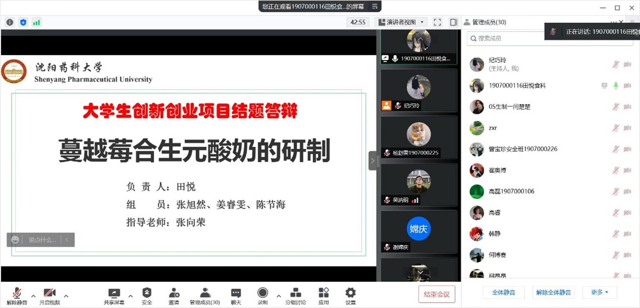 5月24日,太阳成集团tyc122ccvip利用腾讯会议线上召开了“2021年度老员工创新创业训练计划项目结题答辩会”。韩静、张向荣、何博赛、赵旭、张晓书五位评委老师,教学秘书纪巧玲参会,会议由教学副经理韩静主持。