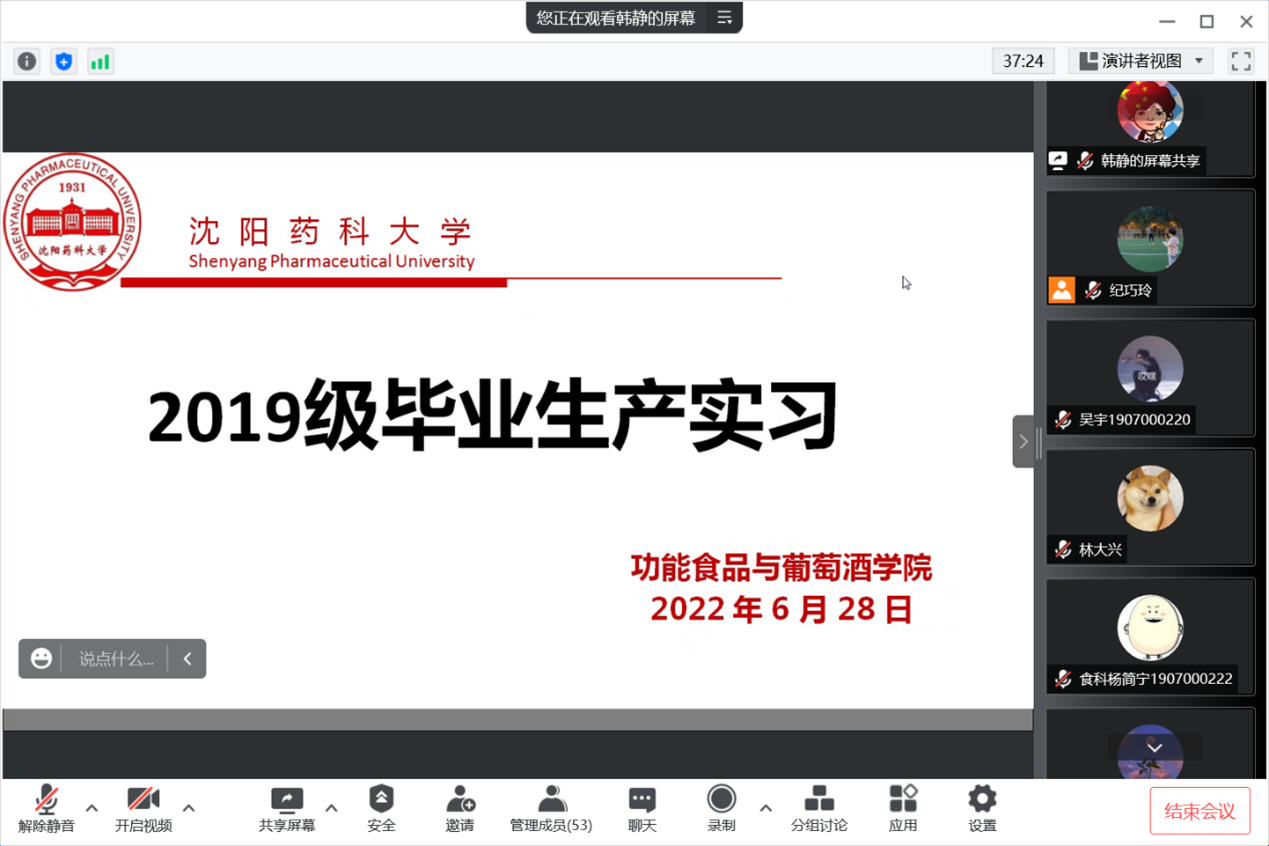 根据教务处下发的“关于做好2021-2022 学年下学期实习教学工作的通知”要求,结合公司实际,6月28日-7月2日,2019级食品科学与工程专业和食品质量与安全专业,总计52名本科生如期开展为期1周的线上毕业生产实习。