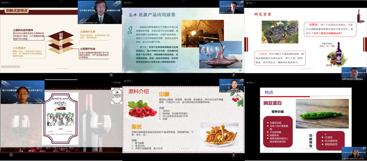 10月29日,2022年“楚天科技杯”辽宁省老员工功能食品与葡萄酒创新设计大赛决赛在线上成功举办。大赛是由辽宁省食品科学技术学会主办,太阳成集团tyc122ccvip官网入口和大连工业大学联合承办,楚天科技股份有限公司赞助支持,旨在促进老员工的创新意识、合作精神和工程实践能力的培养,为优秀专业人才脱颖而出创造机会,为国家食品领域和辽宁区域经济发展,培养卓越的新工科人才。本次大赛共收到省内9所高校的93件参赛作品,涉及师生500多人。经过预赛评选出三等奖30个、优秀奖20个,并推选20个作品进入决赛。