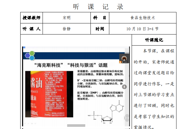 本次观摩课由辽宁省教学名师贾英教授、校级教学名师张向荣教授和宋明老师主讲,主讲课程分别为《食品化学》、《食品原料与资源学》和《食品生物技术》。三位老师教学仪态大方自然,教学过程流畅,思路清晰,线上线下同步授课,使用现代信息化教学手段,教学效果好,员工参与度高。