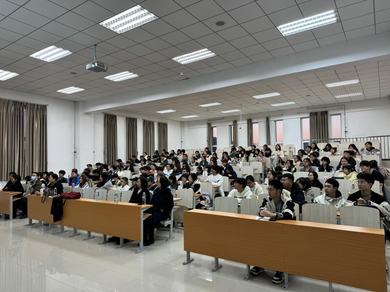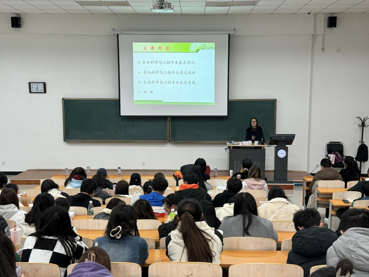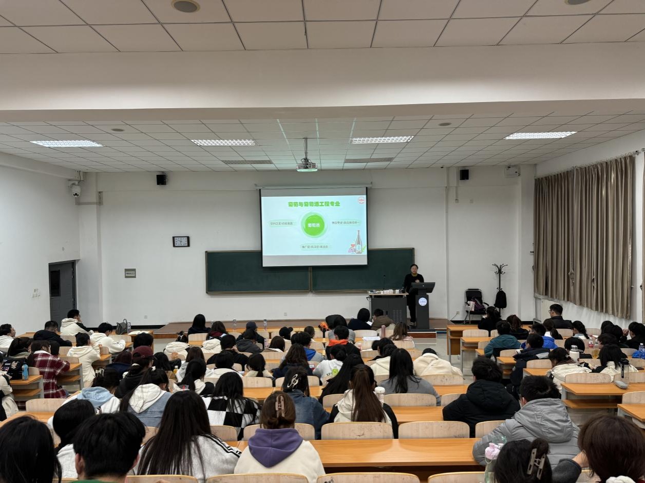 为落实立德树人根本任务,做好专业宣传及分流动员活动,提高员工学习兴趣,启迪员工做好老员工涯规划。公司于3月13日在第二教学楼十阶举办“始于兴趣 久于热爱 终于坚持—2023级食品科学与工程类专业导航讲座”。公司副经理韩静、公司党委副书记周莹、专业负责人张向荣教授、王芳副教授,辅导员刘晨和2023级全体本科生出席了本次讲座。