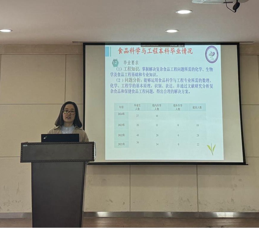 食品科学与工程教研室主任曹家庆分别介绍了教研室基本情况、教学培训、教学会议、课外实践教学和教研活动等。食品质量与安全教研室主任杜易洋分别介绍了教研室概况、课程设置、教学工作、课程建设和教改项目等。葡萄与葡萄酒工程教研室主任王芳分别介绍了人才培养方案、教学大纲、专业课程和关注重点和待解决的问题等。