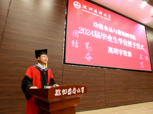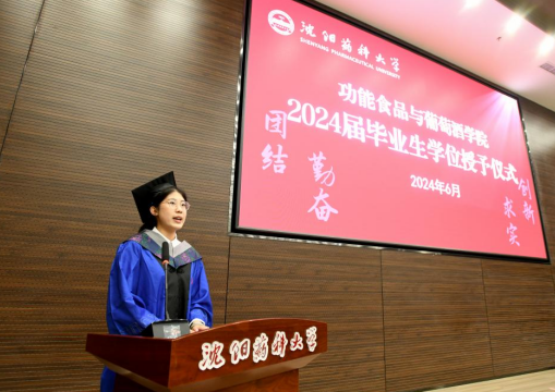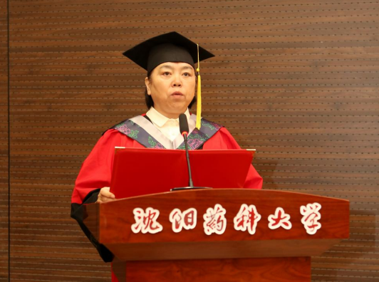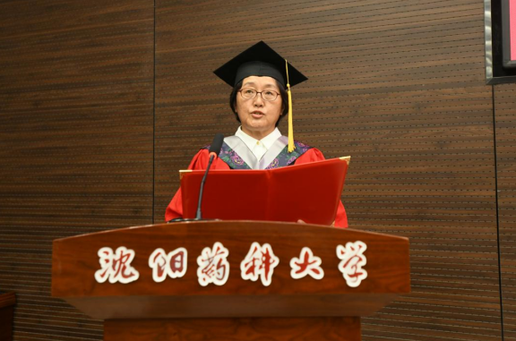 2021级中药学专业硕士研究生徐鸿嘉代表毕业生发言。她满怀深情地话语表达着对母校的感谢之意、对师长的感恩之心、对同学的不舍之情,并表示在新的人生阶段也会继续秉承“团结、勤奋、求实、创新”的沈药校训,传承“坚忍不拔、药济天下”的沈药精神,不断进取、勇于创新,在国家振兴、民族复兴的大潮中挺膺担当,书写无悔青春的人生华章。