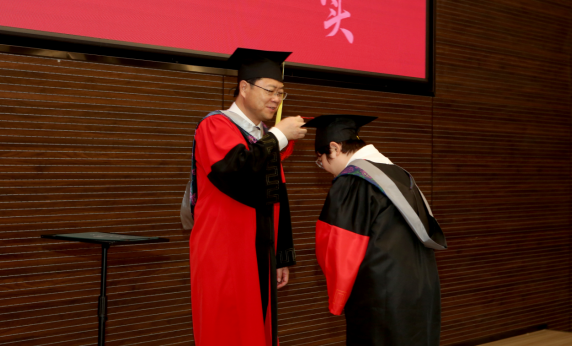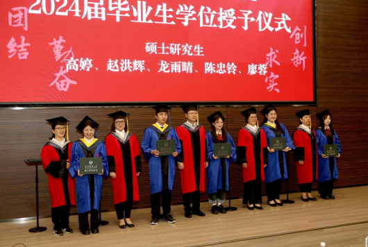 在庄严的国歌声中,2024届毕业生学位授予仪式正式拉开帷幕。侯晓虹宣读博士、硕士学位授予名单,高明宇为2024届博士研究生授予学位;高明宇、侯晓虹、韩静、贾英、张向荣为2024届硕士研究生授予学位。韩静宣读学士学位授予名单,公司学位评定分委员会委员为2024届本科毕业生授予学位。