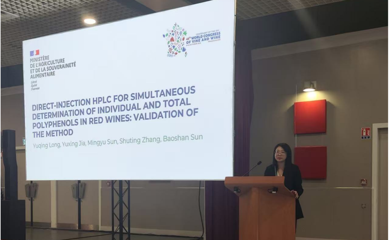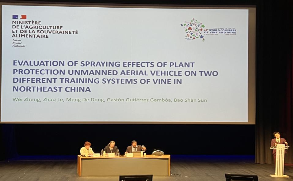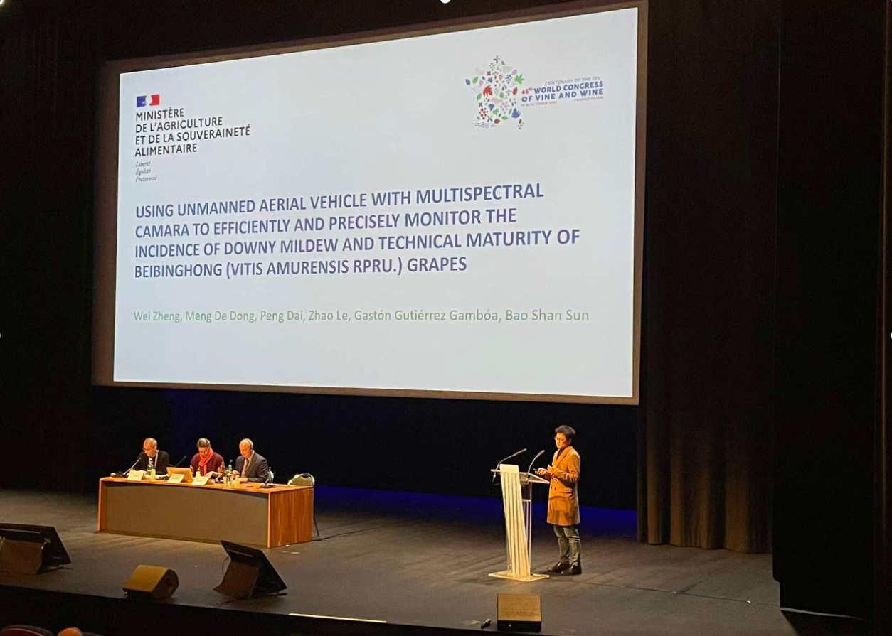 公司青年教师郑崴和张舒婷受邀参加此次大会,并进行了三场大会报告。郑崴老师在葡萄栽培专题做了两场学术报告,题目分别为“Evaluation of spraying effects of plant protection unmanned aerial vehicle on two different training systems of vine in northeast China”和“Using unmanned aerial vehicle with multispectral camara to efficiently and precisely monitor the incidence of downy mildew and technical maturity of Beibinghong (vitis amurensis rpru.) grapes”。前者系统探索了植保无人机喷洒在两种不同树形的葡萄园中的应用前景,为坡地葡萄园中病虫害防治工作提供了新的思路;后者提出并论证了一种基于多光谱无人机的葡萄霜霉病病情及成熟度无损监测的新方法。张舒婷老师在酿酒学专题展示了题为“Direct-Injection HPLC for simultaneous determination of individual and total polyphenols in red wines: validation of the method”的学术报告。该报告提出了葡萄酒分析的一种创新方法,并进行了系统性验证,为葡萄酒中多酚的快速、准确检测提供了新的技术路径。