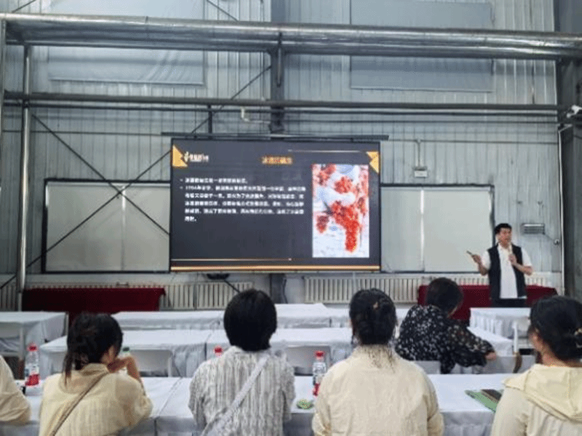 图2 蔡龙麟酒庄的企业导师详细介绍其冰酒酿造工艺,包括酿造原理和技术优化等关键点。